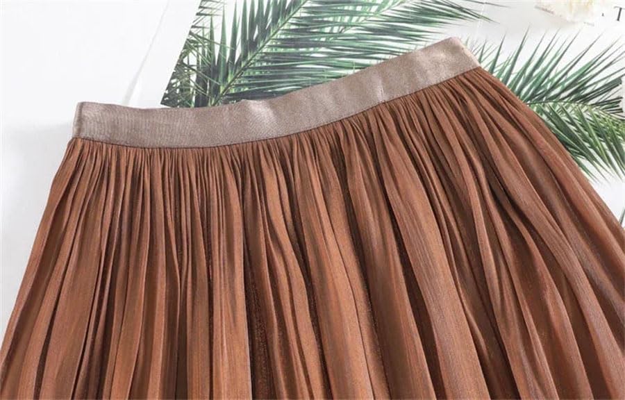 More information about Women's Solid Satin A Line Midi Skirt with Elastic Waist Summer Casual Loose Fit Pleated Skirt