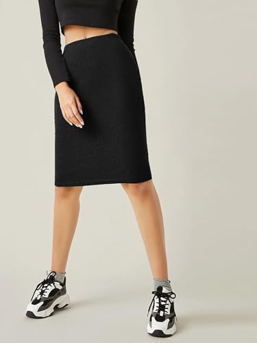 Womens' Elastic Waist Solid Color Rib-Knit Skirt Casual Mini Skirts for Women 6
