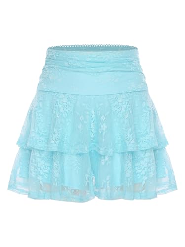 TiaoBug Women Y2k Lace Mini Skirt Ruffle Layered Low Waist Pleated Short Skirt Streetwear 2