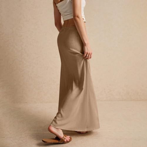 • DESIGN:Embrace summer vibes with this breezy maxi skirt,blending bohemian flair with a dramatic fishtail hem.The ankle-grazing length and flowy cotton-linen fabric (75% linen, 25% cotton) create ethereal movement, perfect for beach days, festivals, or casual strolls.Low rise design paired with an adjustable drawstring ensures a relaxed, customizable fit