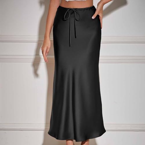 HOT ! Maxi Skirt Women's Solid Color High Waist Drawstring Adjustable Ankle Comfortable Work Business Office Skirt