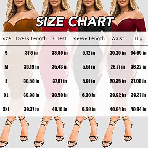 Ekaliy Women's Sexy Off The Shoulder Midi Dress Ruched Bodycon Dresses 5
