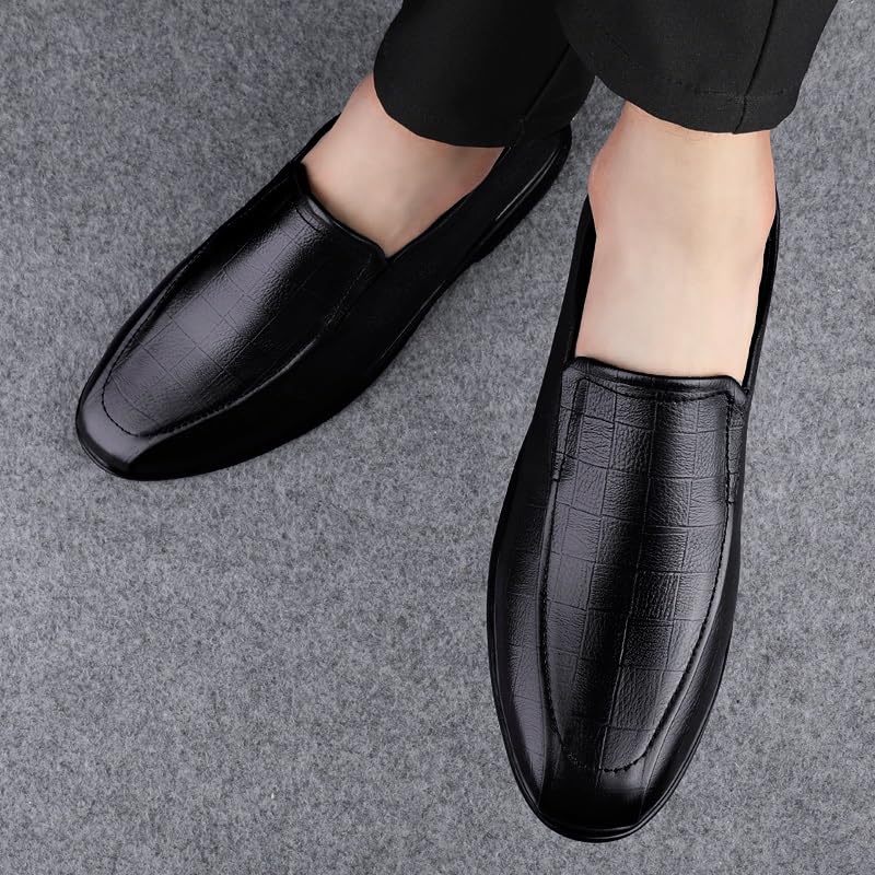 More information about TAYGUM Dress Oxford for Men Slip On Round Toe Plaid Bike Toe Leather Oxford Shoes Slip Resistant Rubber Sole Non Slip Anti-Slip Working(Black,9.5)