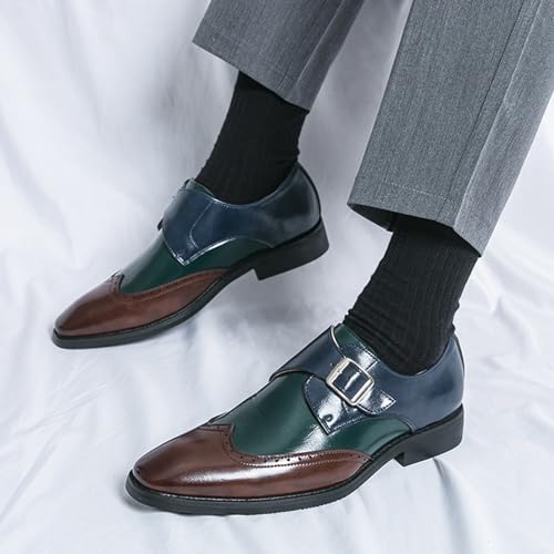 Men's Soft Leather Carved Brogue Oxford Shoes Fashion Metal Buckle Stitching British Business Casual Formal Work Shoes 6