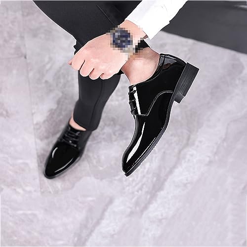 Oxford Shoes for Men Derby Shoes Mens Formal Dress Business Lace Up Shoes Classic Black Patent Leather Shoes 6