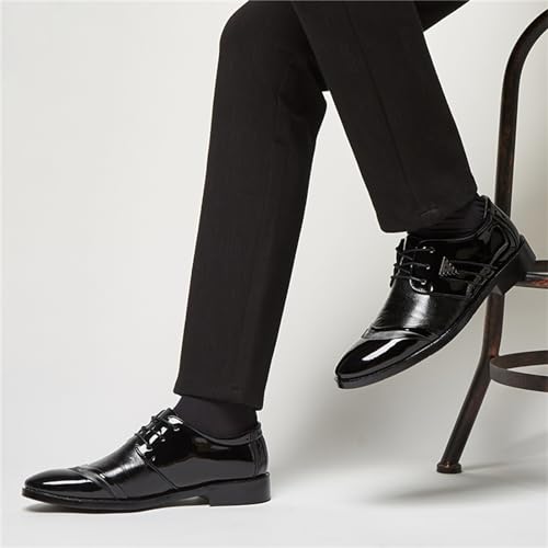 Mens Lace Up Dress Shoes Modern Formal Business Casual Office Suit Tuxedo Patent Leather Oxford Shoes 7