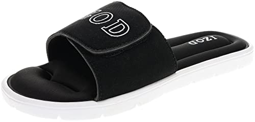 HOT ! IZOD Sandals for Men, Adjustable Slide Sandals with Memory Foam Cushioning, Black, Size XL (Mens' 13)