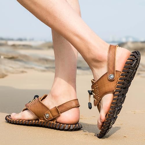 Mens Leather Sandals Flip Flops Sandals Hand Sewn Mens Barefoot Sandals Daily Outdoor Casual Sandals Soft Breathable Non-Slip Wearable Durable 5