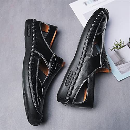 Shoes Men's Sandals Genuine Leather Beach Shoe Hollow Cut Out Flats Casual Sandals(40) 6