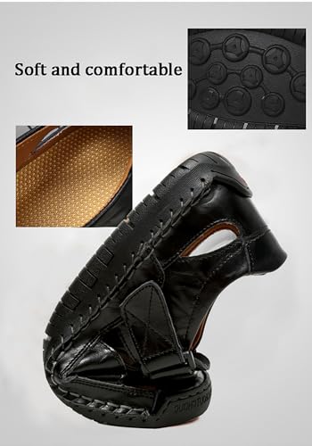 • Cowhide leather: Wear-resistant design - with elastic fabric, breathable and skin-friendly. Solid and waterproof leather sandals are hand-sewn. Adjustable hiking slippers - sandals with side/ankle hook-and-loop straps