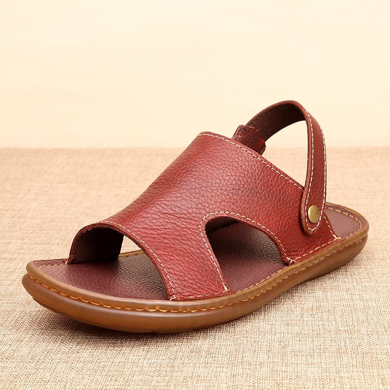 Men Leather Sandals Classic Shoes Slippers Soft Sandals Roman Comfortable Outdoor Beach Walking Footwear(White-Patch Five-Pointed star4,41 Code) 6
