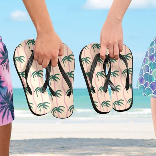 HOT ! Palm Tree Stripe Beige Flip Flops for Beach Thong Sandals Anti-slip Lightweight Shower Shoes for House Indoor Outdoor