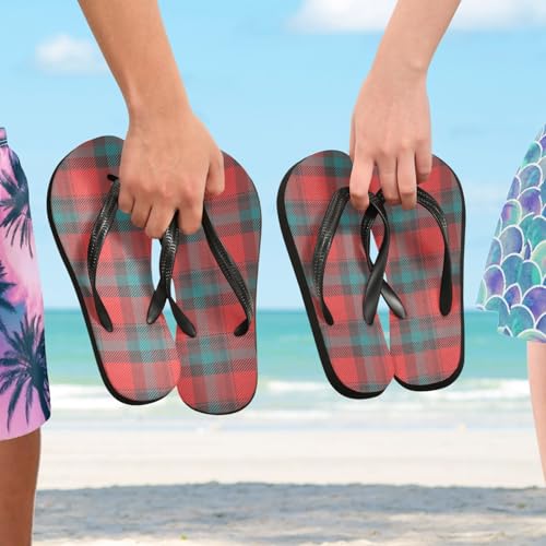 Plaid Square Red Flip Flops for Beach Thong Sandals Anti-slip Lightweight Beach Slippers for Summer Outdoor Travel 1