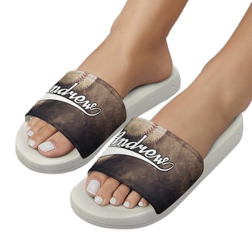 Custom Sports Slides Personalized Slippers - Baseball Sandals Quick Drying Softball Slippers Indoor Outdoor,Gifts for Men Youth Boy (White,Style 24) 6