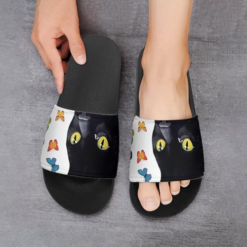 HOT ! Black Cat Butterfly Non Slip Slides Sandals for Women Men Quick Drying Shower Shoes for Bathroom Pool Beach