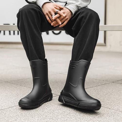 • 【Lightweight & Multi-Use】:Mid-barrel rain boots have the perfect height, It is easy to put on and take off, the mens rain boots are not only lightweight, but making your walking more stable, Even if you wear our lightweight mens rubber boots for a long time, you will not feel bound and tired. Its minimalist and non-monotonous colors are often chosen and can be perfectly matched to any of your outfits.