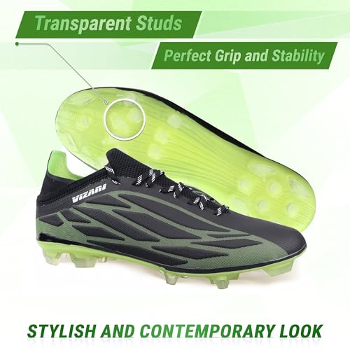 More information about Vizari Provo FG Adult Soccer Cleats for Men & Women | Black/Lime Firm Ground Soccer Shoes | Wide Width Football Shoes for Outdoor Play | Transparent Studs Football Shoes for Better Traction