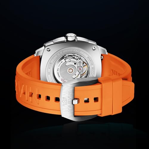 • Unique and Fashion Design: Marvin Mens Watches features a unique grid design with 3 hands and date window,simplicity & legibility,and with orange fluoro rubber band,black round dial with noble Marvin logo, blend classic and energetic,showcasing extraordinary and luxurious swiss timepieces,highlighting the charm of mature men,Automatic Watch is suitable for business occasions and also the best present for friends and father.