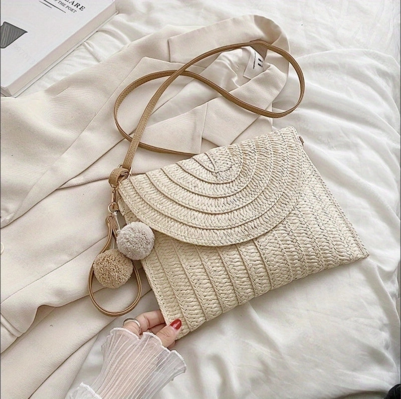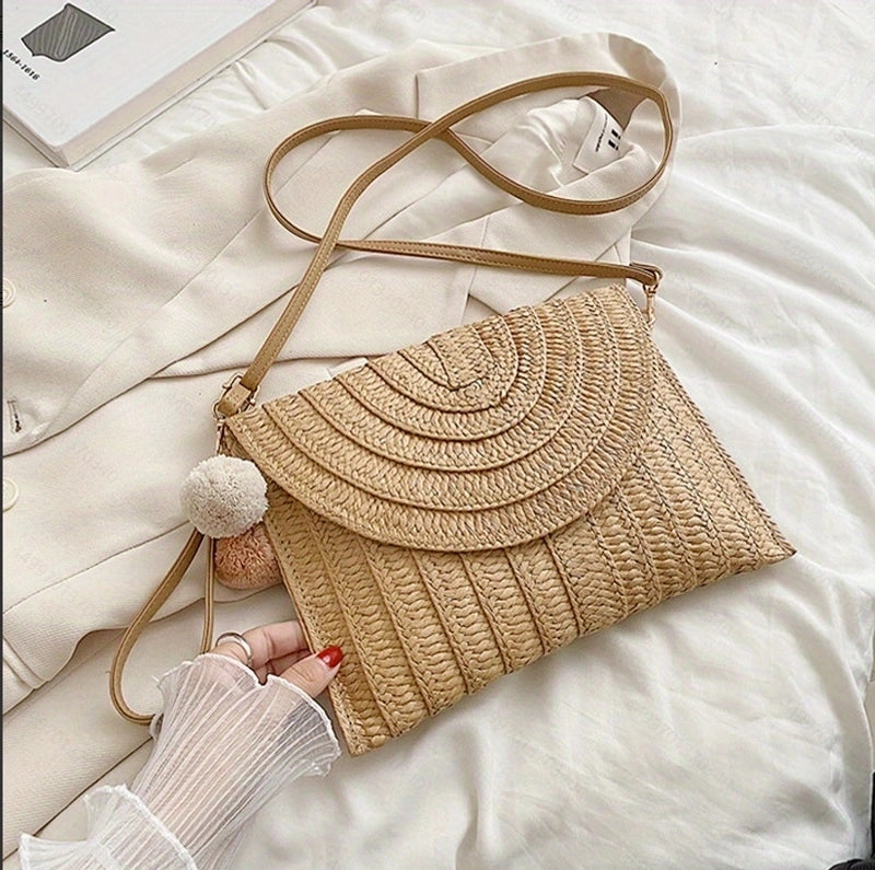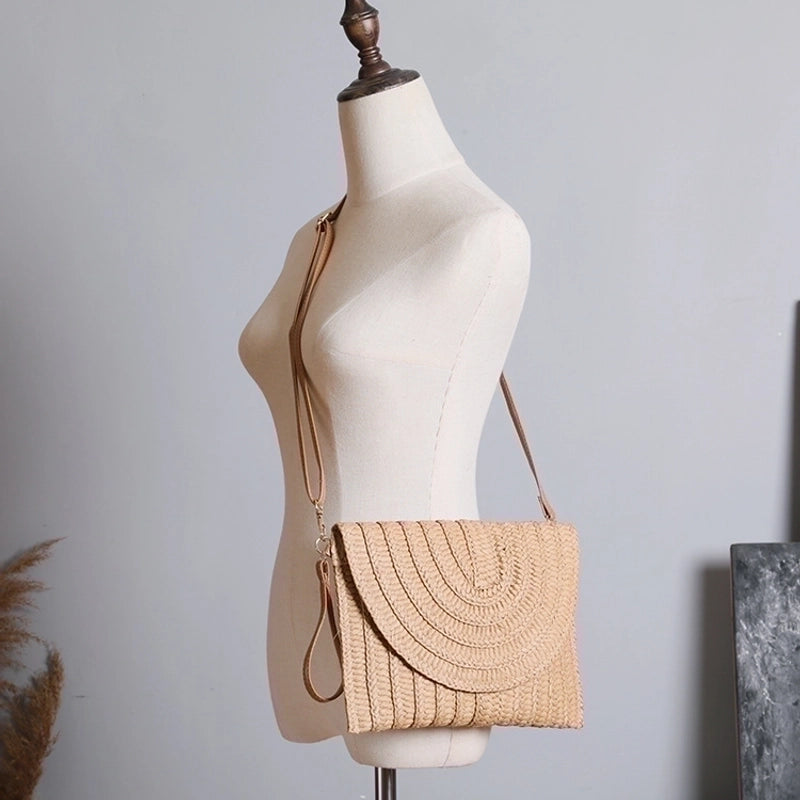 HOT ! Women's Medium Straw Solid Color Vintage Style Classic Style Square Flip Cover Shoulder Bag