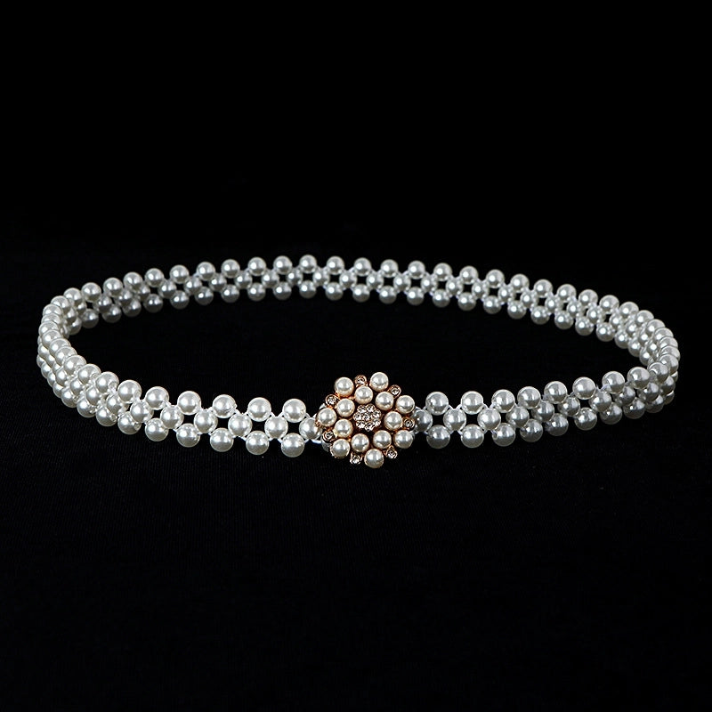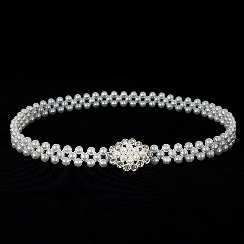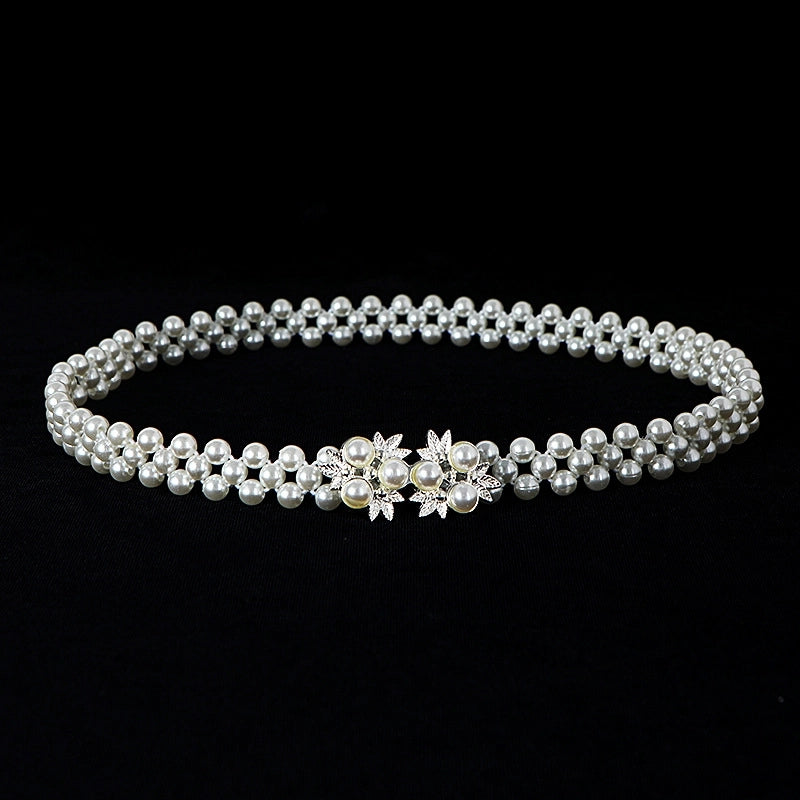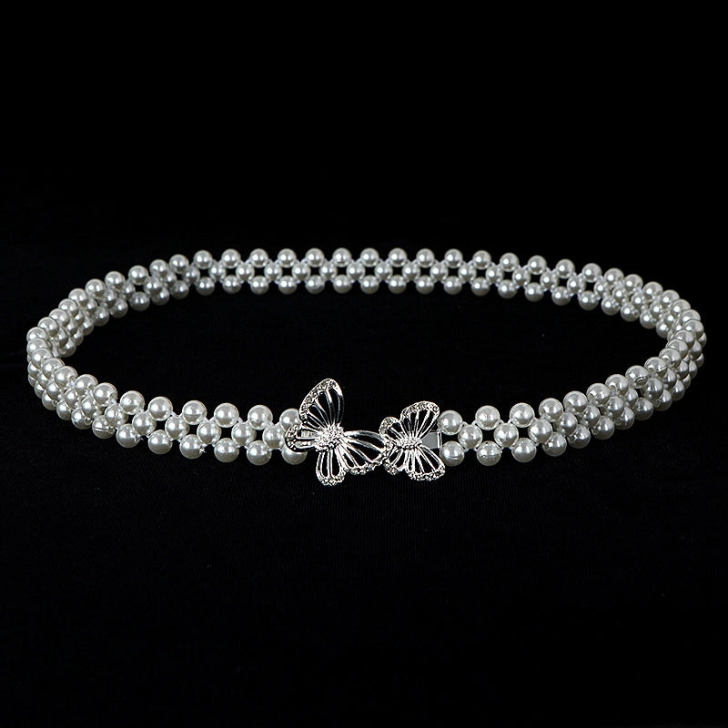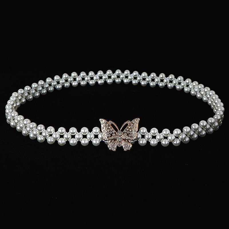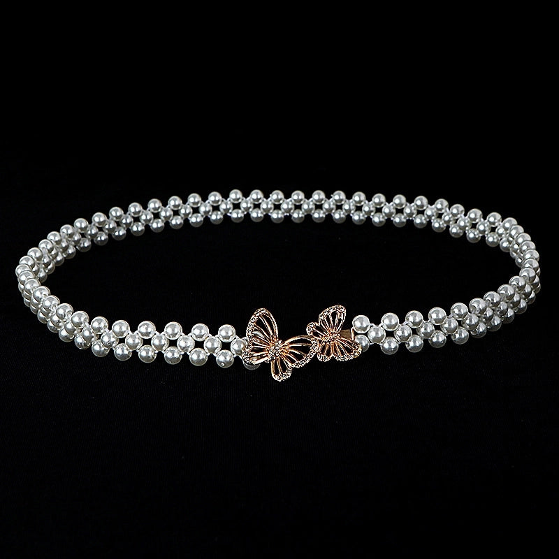 Sweet Flower Butterfly Imitation Pearl Rhinestone Women's Chain Belts 19