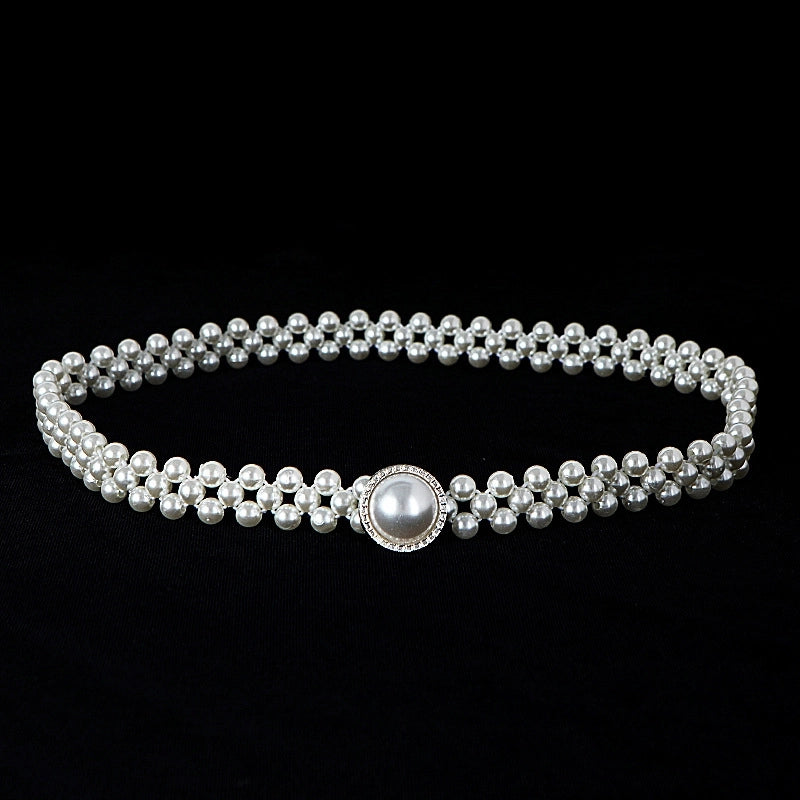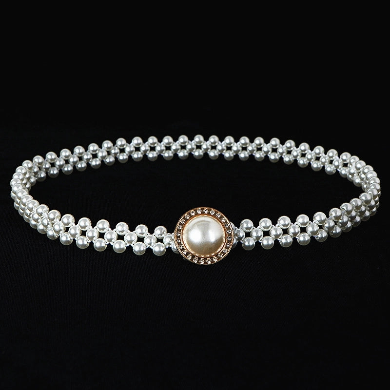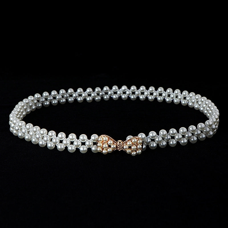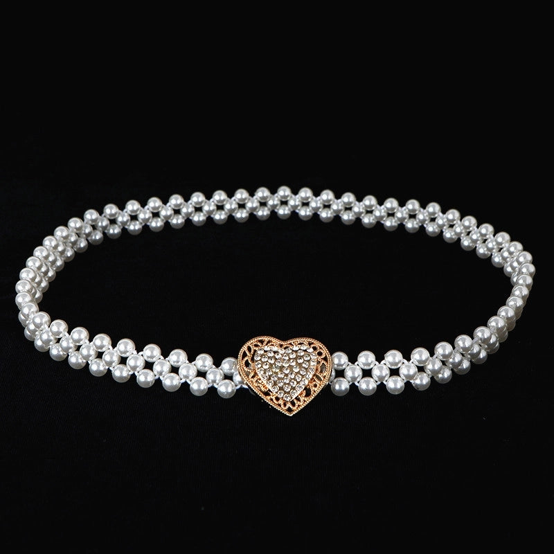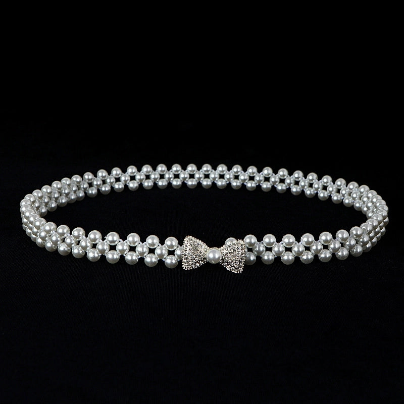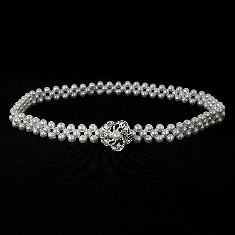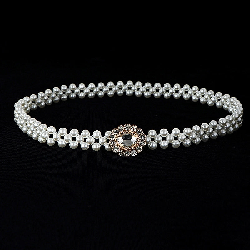 Sweet Flower Butterfly Imitation Pearl Rhinestone Women's Chain Belts 19