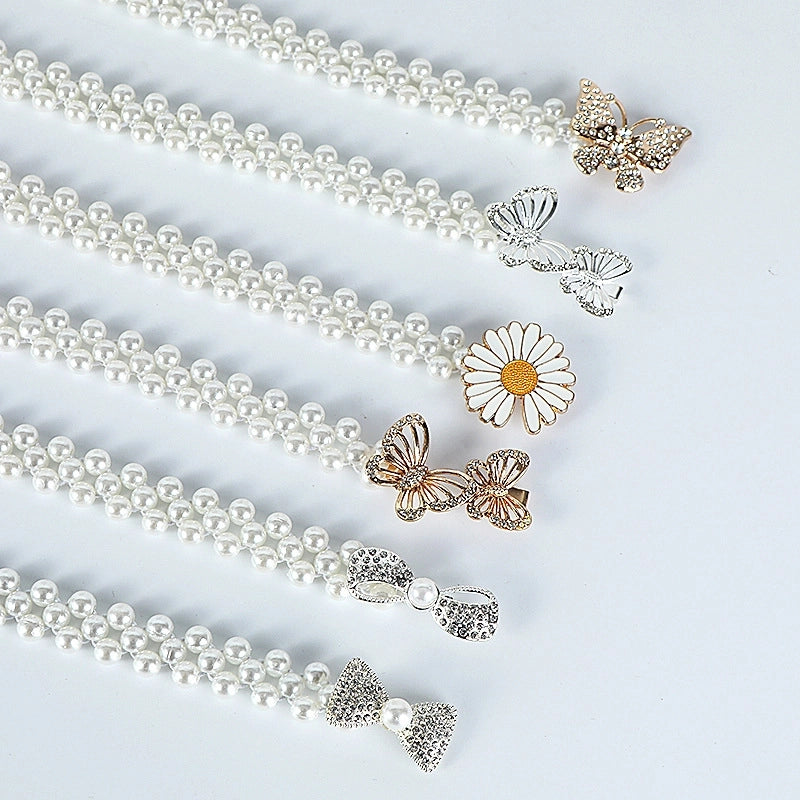 Sweet Flower Butterfly Imitation Pearl Rhinestone Women's Chain Belts 8