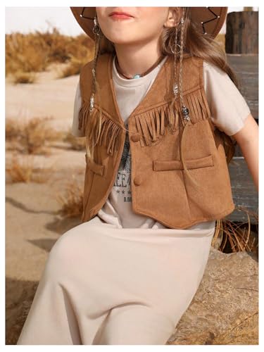More information about Girl's Tassels Sleeveless Vest 70s Hippie Faux Suede Boho Western Cowgirl Fringe Jacket Cardigan