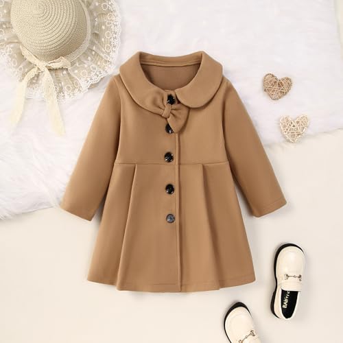 Toddler Baby Girl Coat Long Sleeve Solid Color Buttons Clothes Jacket Little Girls Dress Coat Fall Winter Outfit 4