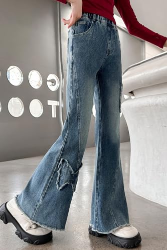 AOWKULAE Girl's Flare Bell Bottom Jeans High Waist Denim Pants with Pockets 5-14 Years 6