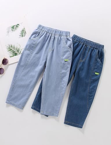 Happy Cherry Unisex Kids Demin Jeans Pants Elastic Waisted Casual Trousers with Pockets 5
