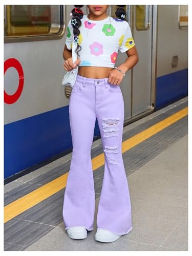 More information about Verdusa Girl's Ribbed Flare Jeans Streetwear Long Denim Pants with Pockets