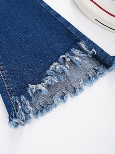 Girl's Ripped Flare Jeans Tassels Hem Bell Bottom Denim Pants Casual Wear 6