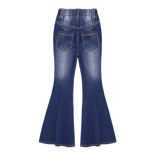 Kids Girls Vintage Elastic Waistband Ripped Denim Pants Washed Skinny Bell-Bottom Jeans with Pocket 6