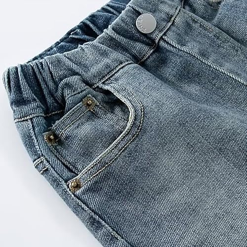 Kids Wide Leg Jeans Boys Girls Unisex Relaxed Fit Vintage Elastic Waist Baggy Straight Leg Denim Pants with Pockets 6