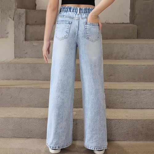 More information about Teen Girls Jeans Classic Baggy Wide Leg High Waist Stretch Denim Pants Y2K Fashion Comfortable Casual Wear 6-14 Years