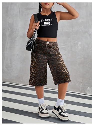HOT ! Milumia Girl's Y2k Leopard Print Jeans Straight Wide Leg Denim Cropped Pants with Pockets