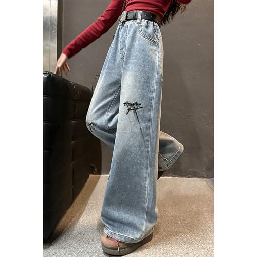 More information about Baggy Jeans for Girls Ribbon Bows Wide Leg Pants Adjustable Waist Coquette Cute Jeans for Girls Kids High Waist Streetwear