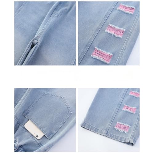 More information about Baggy Jeans for Girls Distressed Elastic Waist Y2K Baggy Jeans Ripped Color Blocks Wide Leg Cute Denim Pants