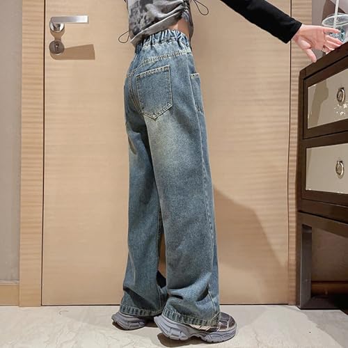 Wide Leg Jeans for Kids Girls Elastic Waist Pull On Baggy Bottom Jean Stretchy Trendy Teens Straight Casual Dance Denim Pants 4