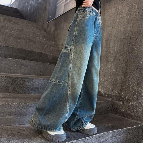More information about Teen Girls' Wide Leg Jeans Kids Baggy Y2k Stretchy Casual Denim Pants Children 2025 Preppy Elastic Waist Button Trouser Jean