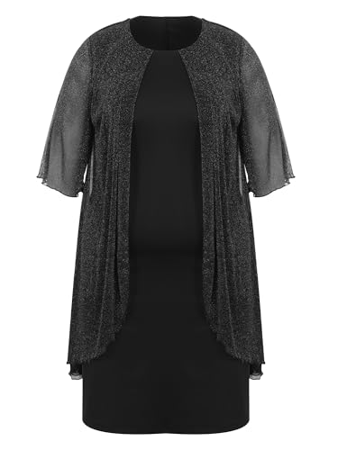 • ✨【Elegant & Versatile Design】Crafted for sophistication, this plus-size evening dress combines timeless solid colors with shimmering silver-thread mesh detailing. Perfect for weddings, galas, parties, or formal events, its semi-sleeve design and mid-length hem strike a balance between modesty and glamour.