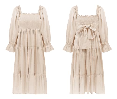More information about R.Vivimos Women's Summer Cotton Plaid Puff Sleeves Bow Casual Off-Shoulder Boho Midi Dress