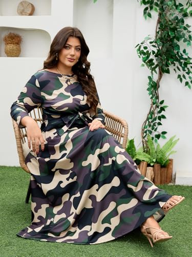 HOT ! Plus Size Dress for Curvy Women Stretch Self Tie A-Line Maxi Dress with Pockets Swing Long Outfit