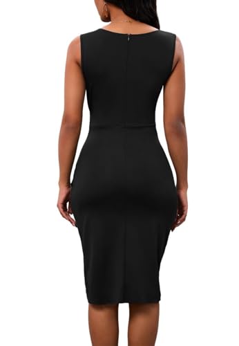 PerZeal Women's Sexy V Neck Sleeveless Bodycon Dress Cocktail Evening Party Wedding Guest Work Faux Wrap Ruched Midi Dresse 1