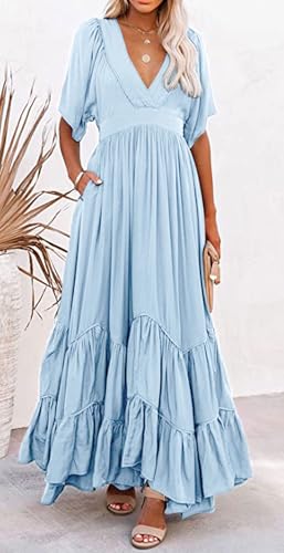 • Versatile dress: This flowy dress is fitted for women and ladies as summer boho holiday vacation trip flowy beach maxi dress, bohemian cruise pool lake pleated ruffle A line swing dress, casual daily wear streetwear loose long dress, sexy cutout party club bar cocktail ruffle flare flowy maxi dress and so on