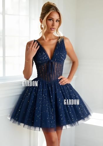 HOT ! GARDOM Sparkly Starry Tulle Homecoming Dresses Short for Teens V Neck Prom Dresses Star Moon Cocktail Dress Mini Gowns