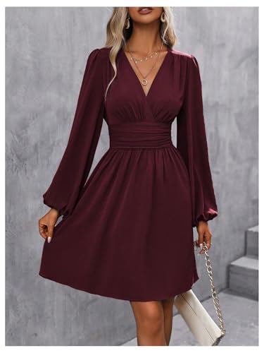 • Feature: Womens dresses, featuring ruched, v neck, a line, flared, long sleeve, short length, match well with heels, or sandals to create charming and stylish look
