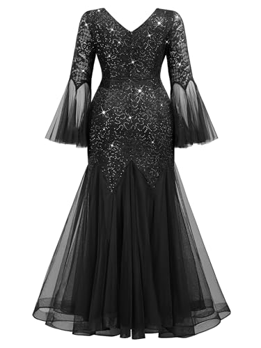 • Features: Tulle Mermaid Hemline, Attractive Sequin Lace Design,Elegant V Neck, Mesh Long Sleeves, Empire Waist, Zipper up Back, Floor Length Formal Maxi Dress
