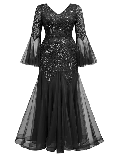 MISSMAY Women's Plus Size Sequins Lace V Neck Sheer Long Sleeves Tulle Mermaid Hem Formal Evening Party Dresses 6