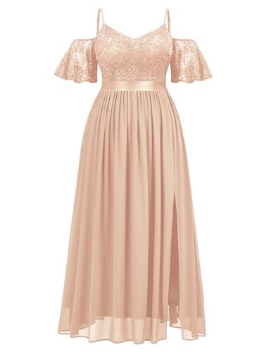 More information about MISSMAY Women's Plus Size Sequins Lace Off Shoulder Short Sleeves Slit Formal Wedding Guest Chiffon Long Dress